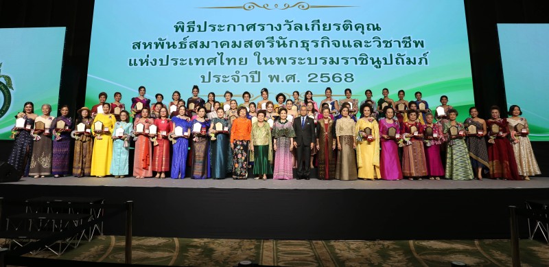 ในงาน”พิธีประกาศเกียรติคุณรางวัลสหพันธ์สมาคมสตรีนักธุรกิจและวิชาชีพแห่งประเทศไทยในพระบรมราชินูปถัมภ์ ประจำปี 2568” ได้รับเกียรติจาก คุณหญิงณัฐิกา วัธนเวคิน อังอุบลกุล ประธานสหพันธ์สมาคมสตรีนักธุรกิจและวิชาชีพแห่งประเทศไทยในพระบรมราชินูปถัมภ์ เป็นประธานในพิธี ซึ่งมี มาลีรัตน์ ปลื้มจิตชม ที่ปรึกษาสหพันธ์และ ประธานการจัดงานฯ พร้อมด้วย ปาลิดา คณานิจกิจไพบูลย์ นายก สธวท อุบลราชธานี, จวงจิรา สุริยวนากุล นายก สธวท ร้อยเอ็ด, วรรณเพ็ญ เกษมสันต์ ณ อยุธยา นายก สธวท ขอนแก่น, ณัฐนี ร่มไทรทอง นายก สธวท กาฬสินธุ์, ประยูร เหล่าสายเชื้อ นายก สธวท ยโสธร, เพ็ญปรียา ประสันนาการ นายก สธวท อุดรธานี, ลักขณา เมธนิธิกุล นายก สธวท มหาสารคาม และ ดร.สุดาพร วัฒโนดม นายก สธวท นครราชสีมา ผนึกกำลังจัดงาน โดยมี อนุกูล ปีดแก้ว ปลัดกระทรวงการพัฒนาสังคมและความมั่นคงของมนุษย์, แรมรุ้ง วรวัธ อธิบดีกรมกิจการสตรีและครอบครัว, ฐิตินันท์ วัธนเวคิน รองประธานสหพันธ์ฯ และประธานดำเนินงานโครงการรณรงค์สร้างวินัยทางการเงิน 6 ภาคี, อัสสเดช คงสิริ กรรมการและผู้จัดการ ตลาดหลักทรัพย์แห่งประเทศไทย, ดร.สร้อยเพชร เรศานนท์ ประธานรางวัลเกียรติคุณประเภทนักธุรกิจสตรีและนักวิชาชีพสตรีอนุรักษ์โลกตัวอย่างประจำปี 2568, Ms.Niamh Maree Collier-Smith Residence Representative, United Nations Development Program (UNDP) ร่วมแสดงความยินดี ณ ห้องแกรนด์ บอลรูม โรงแรมแกรนด์ ไฮแอท เอราวัณ กรุงเทพ เมื่อวันเสาร์ที่ 20 กันยายนที่ผ่านมา
