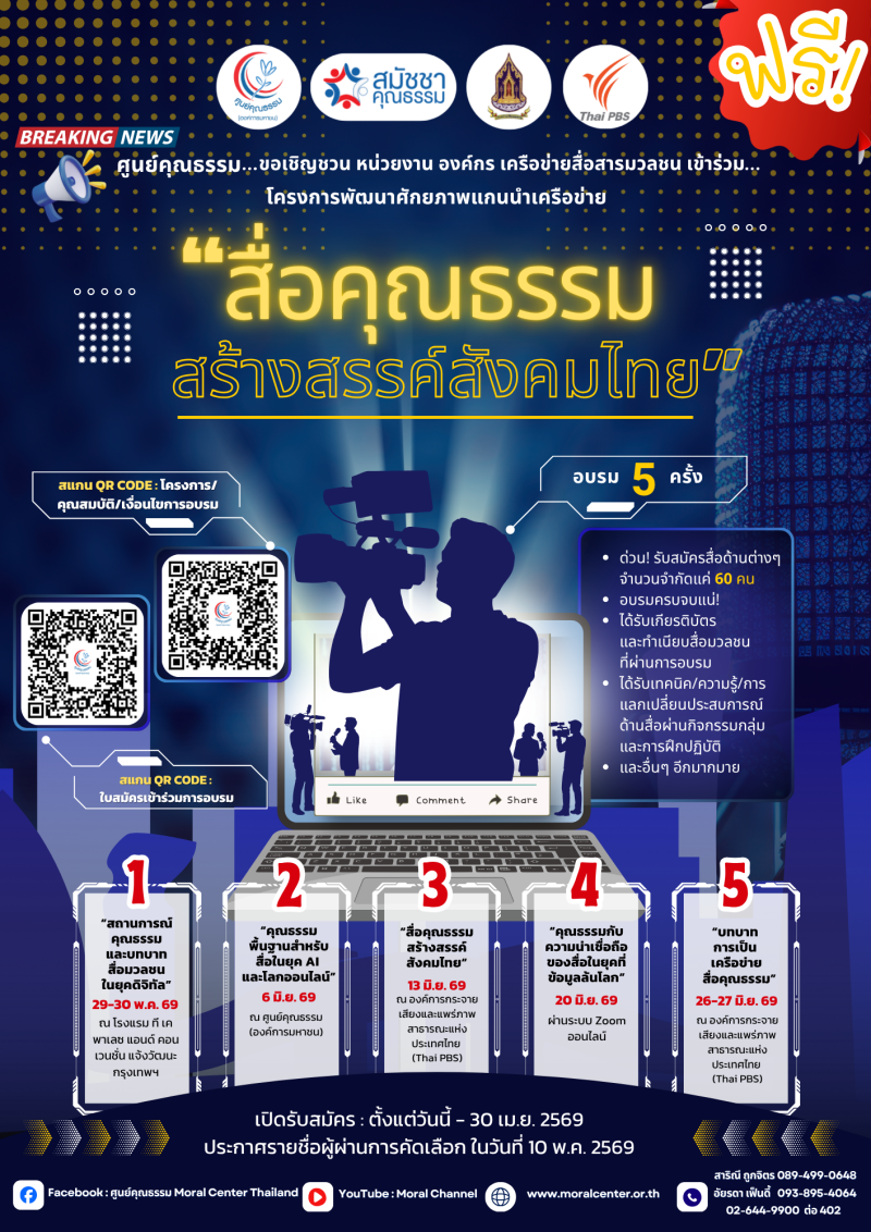 หลักสูตร “สื่อคุณธรรม สร้างสรรค์สังคมไทย” ปี 2569